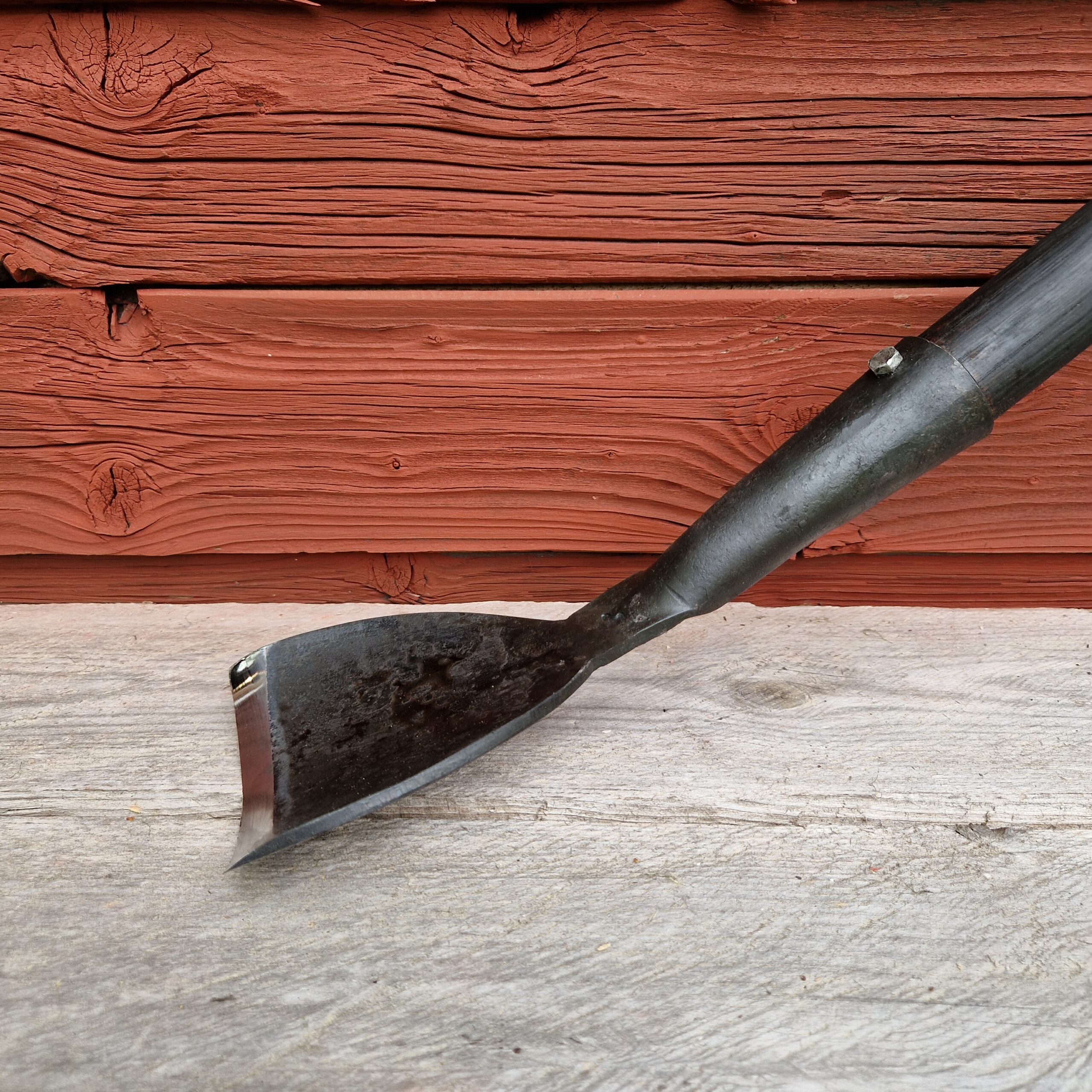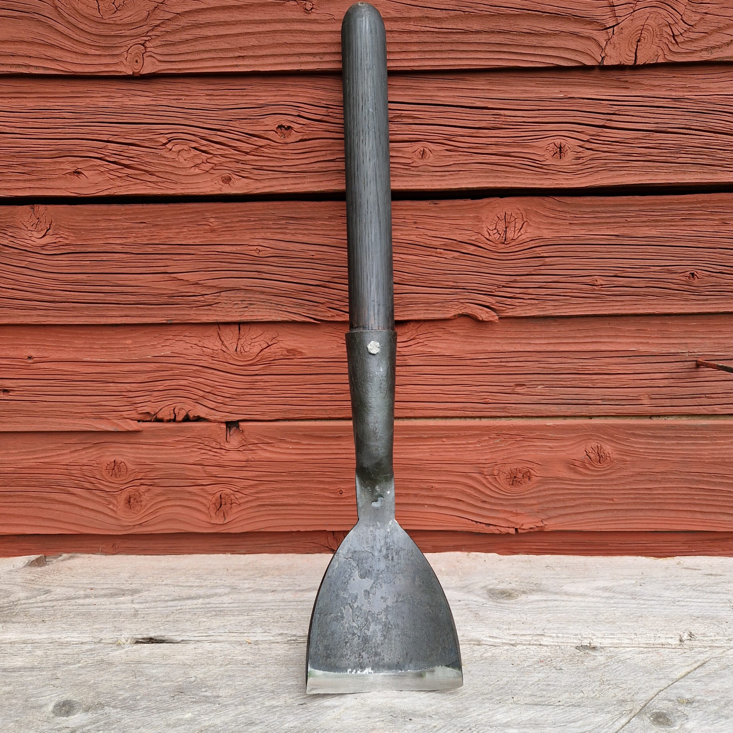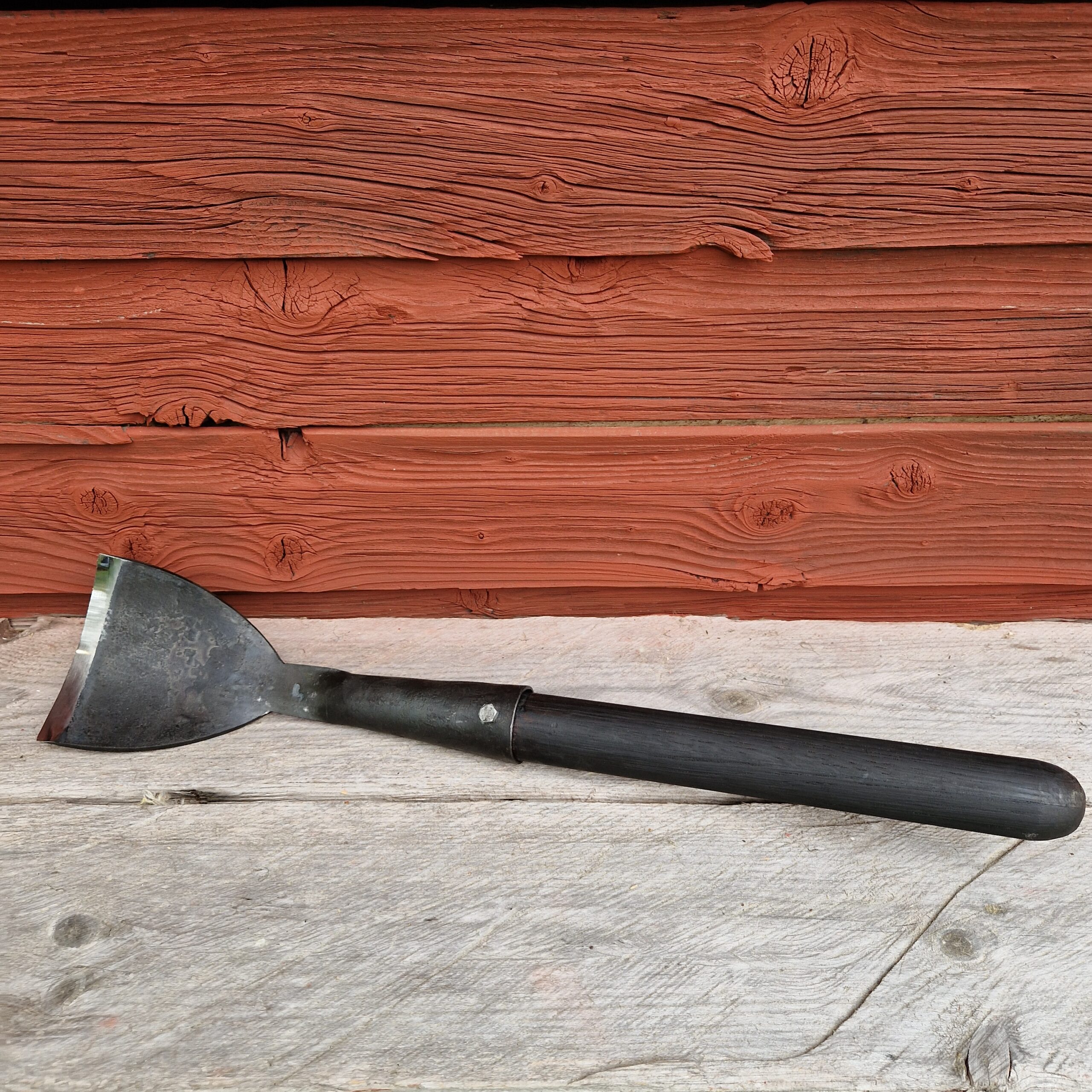 Työkalu on kokonaan käsitelty kotimaisella tervavahalla, ja siitä saattaa käytön alussa jäädä tummaa väriä käsiin. Tervavaha muodostaa sekä puun että metallin pintaan suojaavan kerroksen.